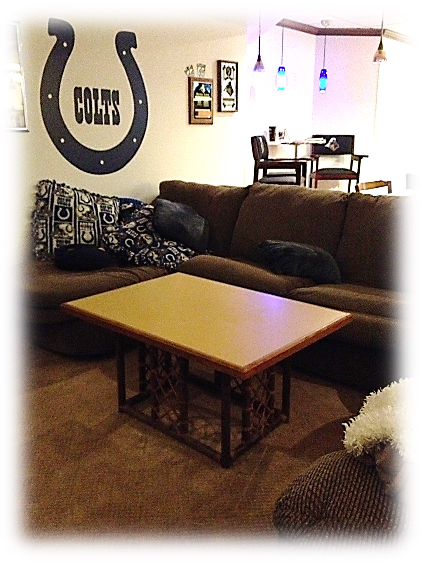 I found this bamboo table base alongside a deserted country road. By adding a Donato’s table top from a store remodel, it makes a great game room table!