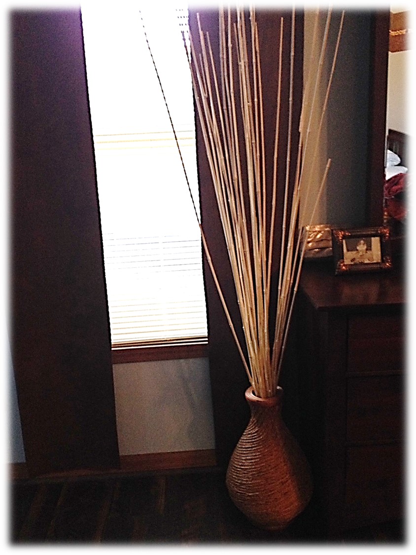 Okay, I did buy the wicker vase at The Salvation Army Store for $2. The bamboo sticks however were a curbside find. I love the height and drama they add! The bamboo also made its way into my master bathroom, up next.